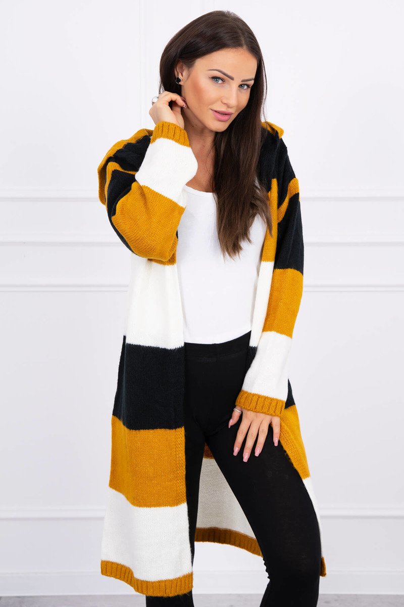 Dámsky svetrový kardigán s kapucňou horčicový